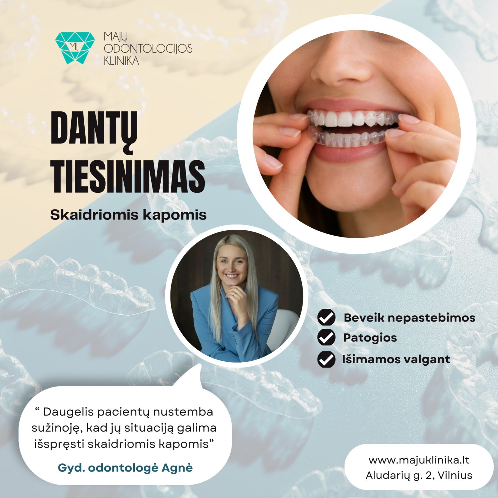 Modernus ir beveik nepastebimas gydymas: Dantų tiesinimas skaidriomis kapomis leidžia koreguoti šypseną diskretiškai. Daugeliu atvejų aplinkiniai net nepastebi, kad vyksta gydymas. 🦷